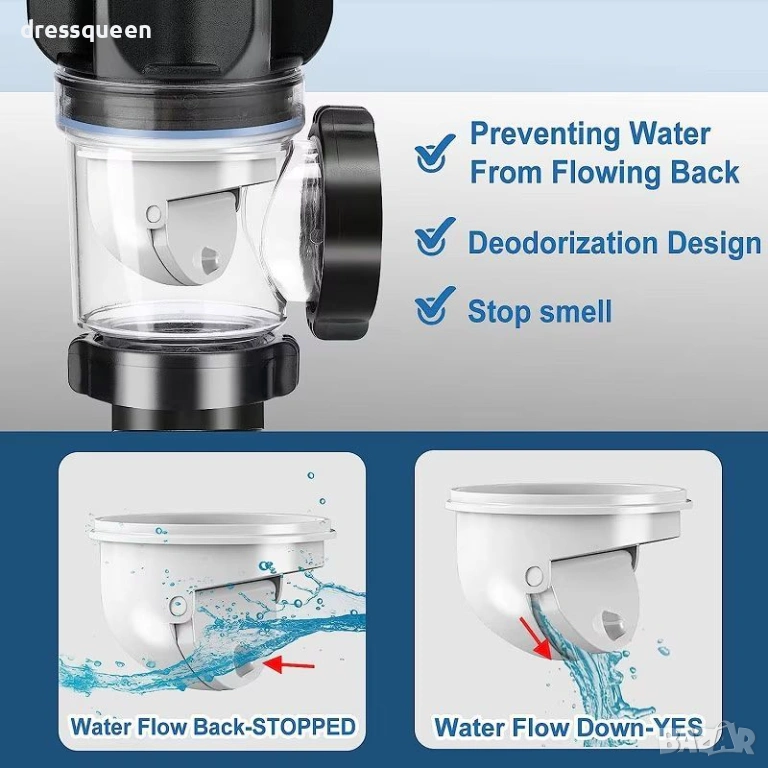 Този гофриран сифон предлага елегантно и ефективно решение за оттичането на вода от мивката. Основното му предимство е вградената клапа против миризми, която предотвратява връщането на неприятни аромати от канализацията.