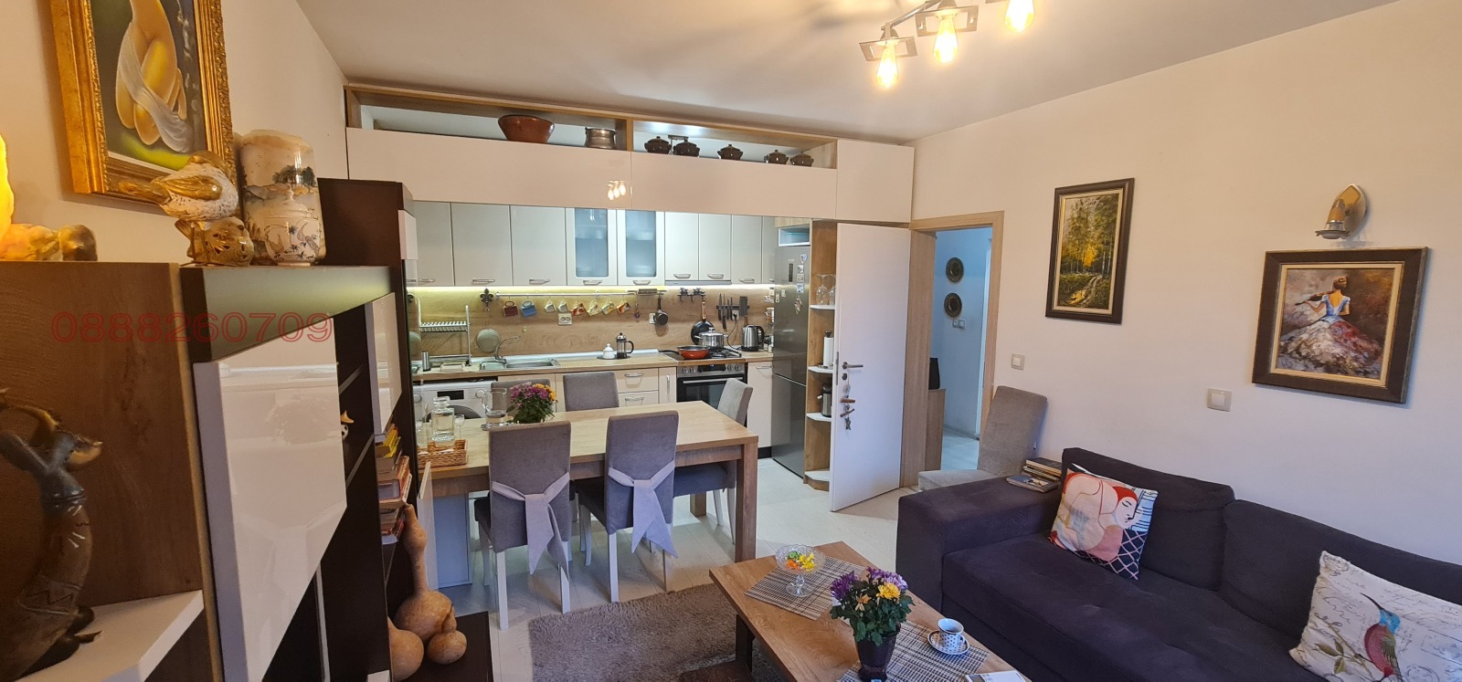 Апартаментът е напълно завършен и готов за нанасяне, оборудван с всички необходими мебели и електроуреди. Жилището е просторно, светло и функционално разпределено, с внимание към детайла и качествени довършителни материали.