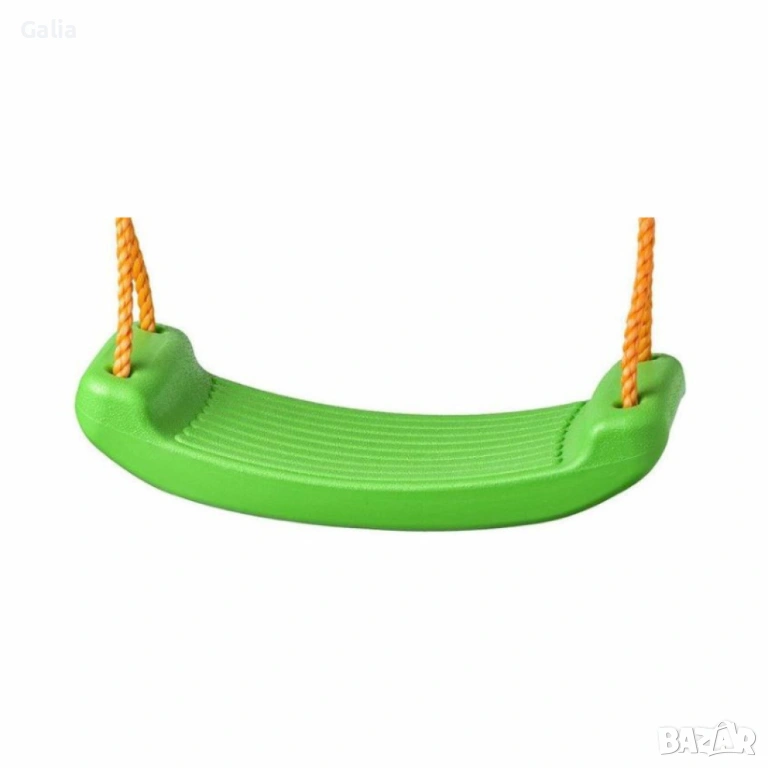 Пластмасова детска люлка без облегалка, стабилна и лека, включени въжета.