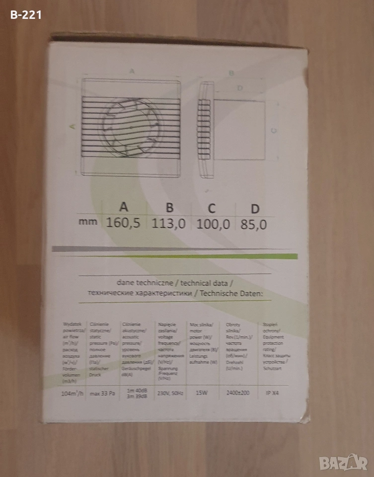 Вентилатор за баня AIRROXY PRIM HS, Дебит 158 mc/h, Сензор за влажност, Таймер, Бял Ф100 Чисто нов неизплован! Лопатките на двигателя върху лагери са проектирани така, че нивото на шума да е много ниско, с много ниски енергийни изисквания и позволяват вентилаторът да бъде монтиран на тавана. Освен стил и ефективност, внимание заслужават и UV стабилизаторите в корпуса на вентилатора, които осигуряват безупречна белота на вентилатора за дълго време. ВЕНТИЛАТОР ЗА БАНЯ AIRROXY PRIM Имате влага, задушен въздух или неприятни миризми в банята? Имате ли проблеми с мазнина или мухъл в дома си поради влага? Тогава определено имате нужда от вентилатор в банята! Лопатките на двигателя върху лагери са проектирани така, че нивото на шума да е много ниско, с много ниски енергийни изисквания и позволяват вентилаторът да бъде монтиран на тавана. Освен стил и ефективност, внимание заслужават и UV стабилизаторите в корпуса на вентилатора, които осигуряват безупречна белота на вентилатора за дълго време. Силиконовото уплътнение и дизайнът на решетката на вентилатора, вдъхновен от формата на морските вълни, гарантират висока степен на защита на електрическото оборудване срещу проникване на твърди предмети и вода, така че е подходящ не само като вентилатор за баня, но и като кухненски вентилатор.
