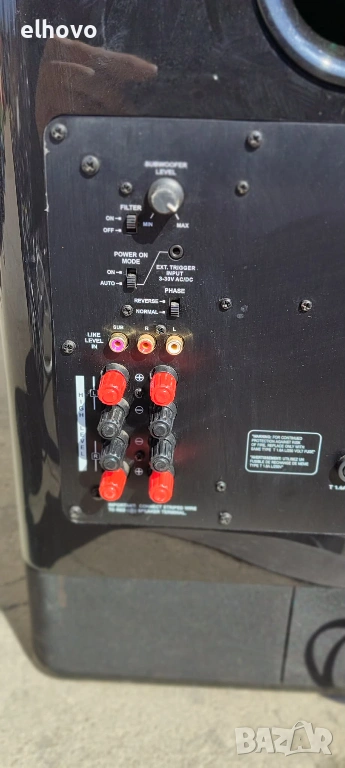 - Входове: Стерео линейни входове (RCA), специален LFE вход за субуфер и входове на високо ниво (за свързване към терминали за колони).