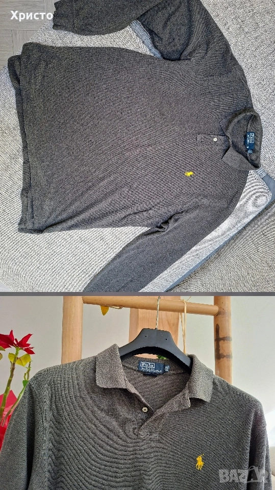 Mъжки лот дрехи. Hugo boss сива блуза с дълъг ръкав и яка L размер - 29 евро Just Cavalli черна тениска с принт XL - 19 евро Ralph Lauren Polo бежова тениска L - 15 евро Ralph Lauren Polo синя блуза - XL - 15 евро Just Cavalli синя тениска с принт XL - 15 евро Tommy Hilfiger черна тениска XL - 10 евро Marlboro Classic бежова тениска L - 12 евро Ralph Lauren Polo сива блуза с дълъг ръкав XL - 13 евро Iceberg бяла тениска с щампа XL - 15 евро Lacoste синя тениска с яка L - 14 евро Bogner сива тениска памук и коприна L - 15 евро Gant зелена с яка XL - 19 евро Cherruti сива с яка L - 12 евро Ice Iceberg бяла с яка XL - 15 евро