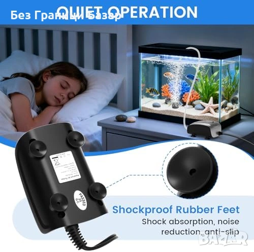 Нов Мини аератор за аквариум 3W 180L/H с въздушен камък и маркуч Помпа