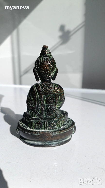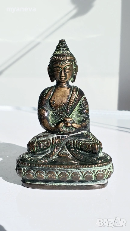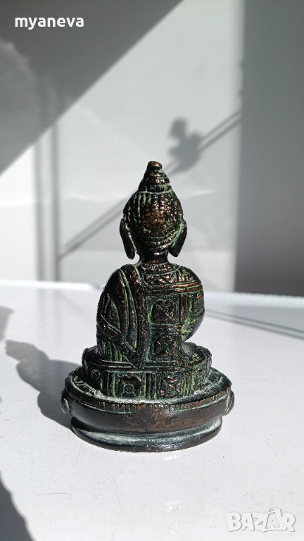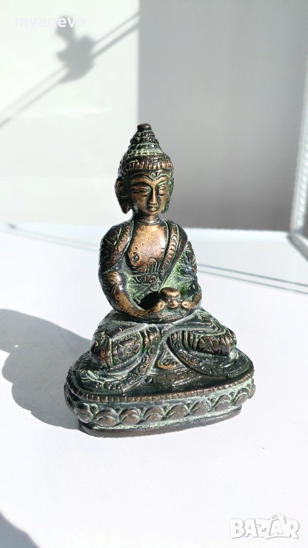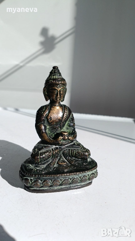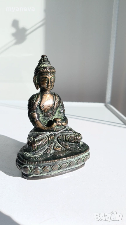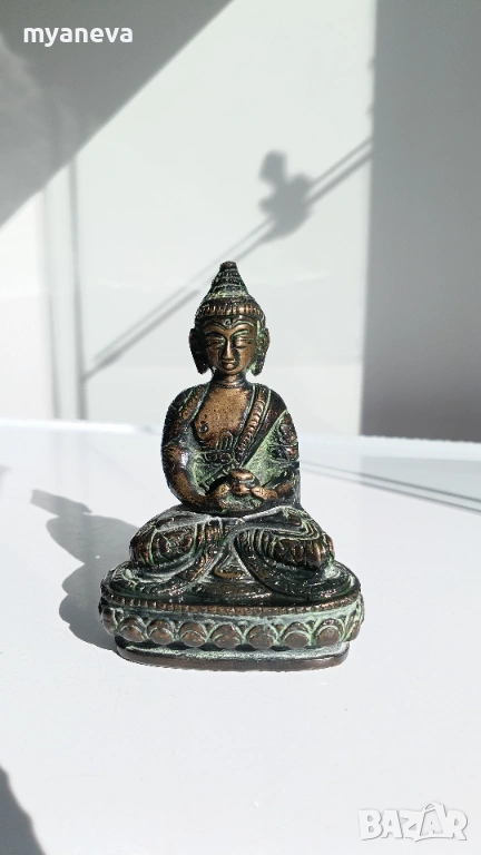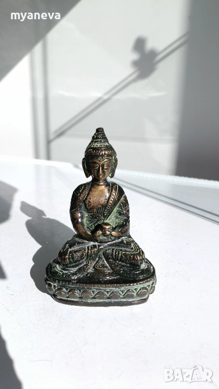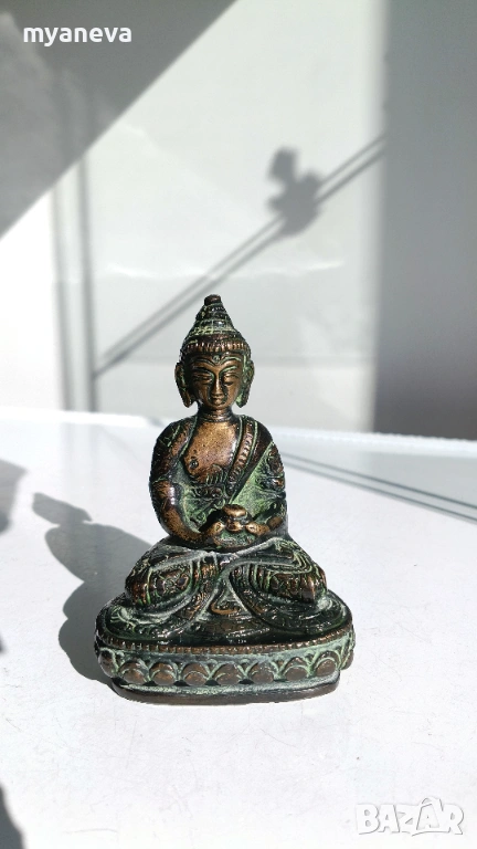 Бронзова , vintage статуетка на медитиращ Буда , предназначена за носене на мир и хармония . → Обява 53824250