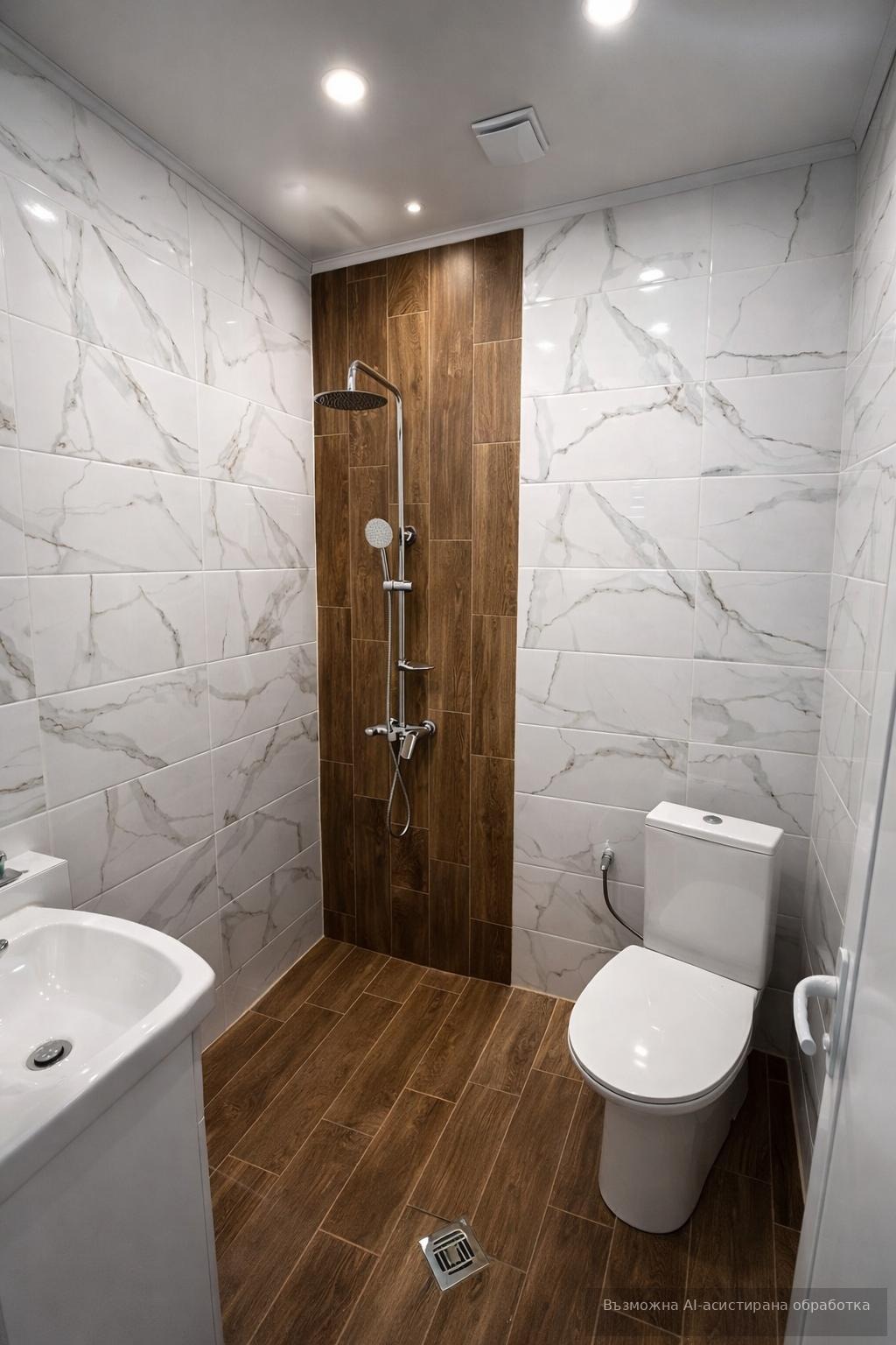 Имотът е ситуиран на 1-ви жилищен етаж и разполага с площ 45кв.м, разгърната в следното разпределение: входно антре, хол с кухненски бокс и обособен спален кът и баня с тоалетна.