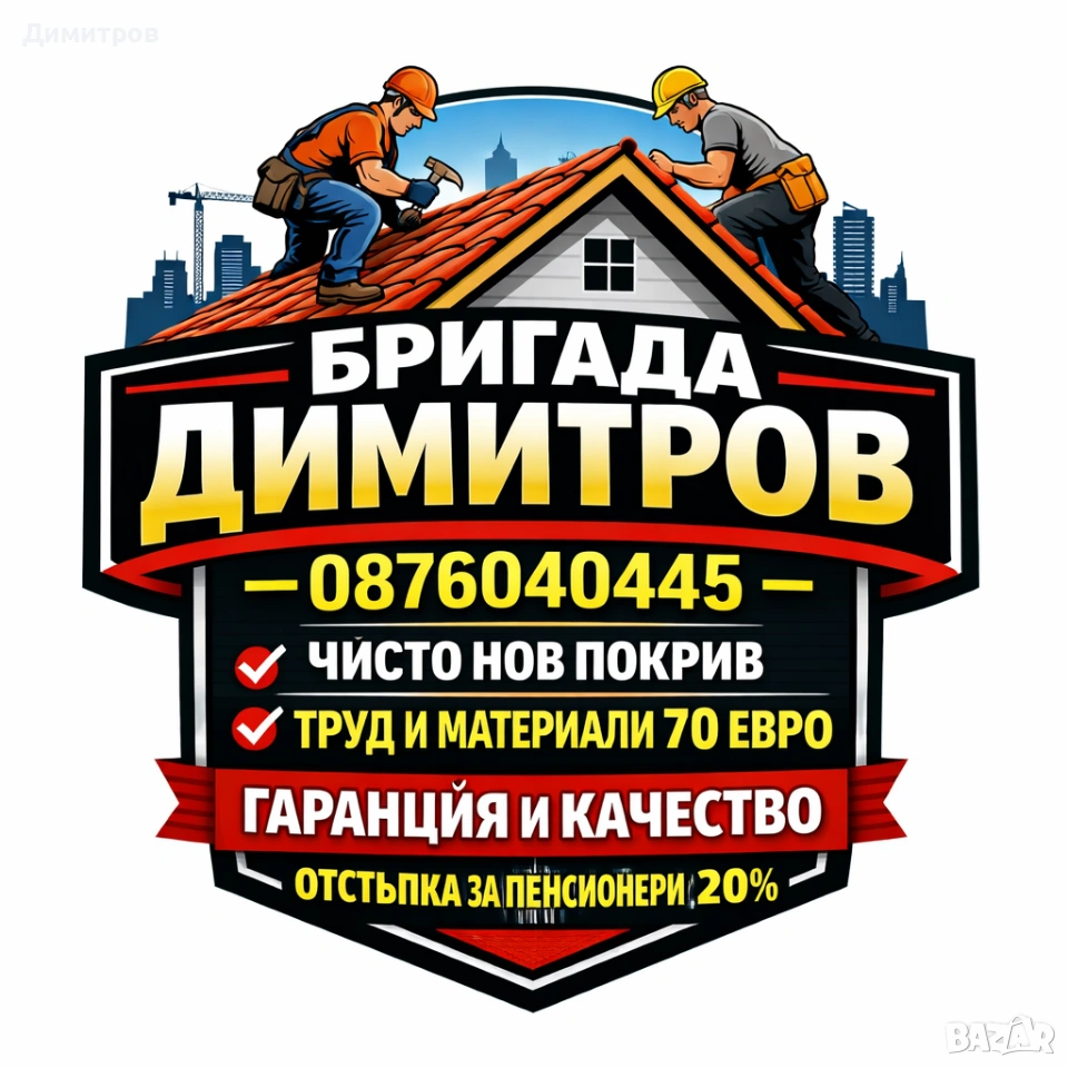 Строителна Бригада Димитрови ГАРАНЦИЯ КАЧЕСТВО.Остъпки за пенсионери до 20 % Гаранция от 5 до 15 години. Подписване на договор Граждански или пред Нотариус. Фирмата работи в циялата страна и е квалифицирана да извърши следните услуги
