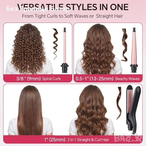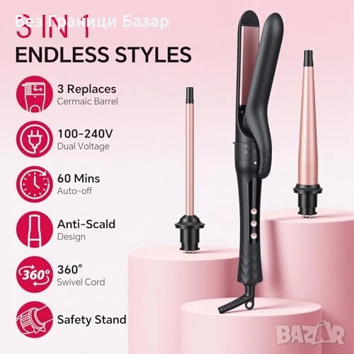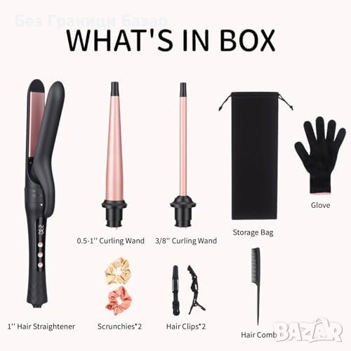 3 в 1 комплект за къдрене и изправяне с 3 сменяеми приставки