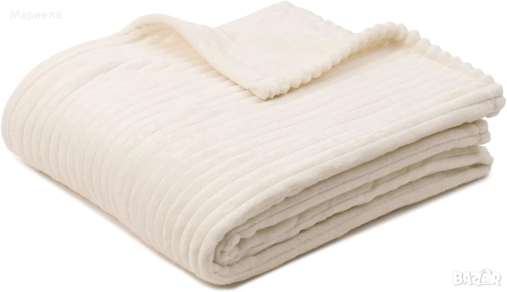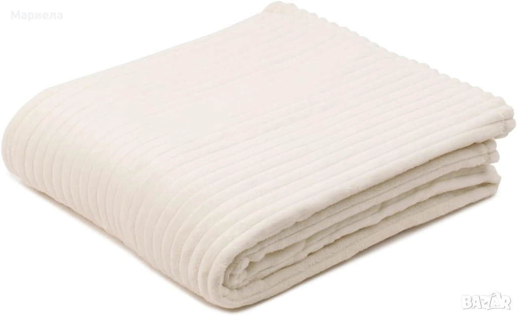Висококачествено домашно одеяло с фин кадифен вид (150 x 200 см) в бяло, подходящо за релакс или като декоративно покривало за диван.