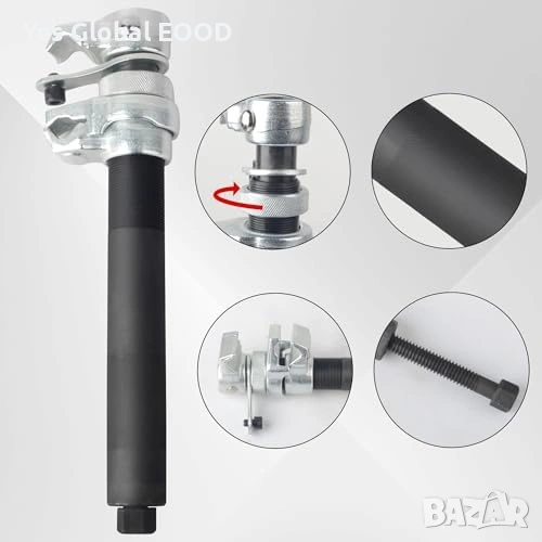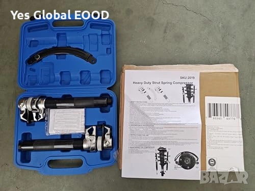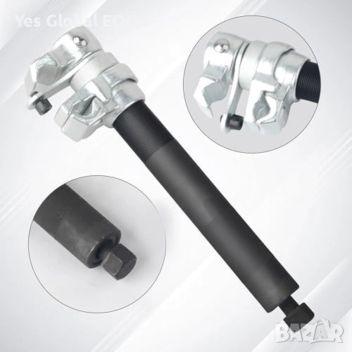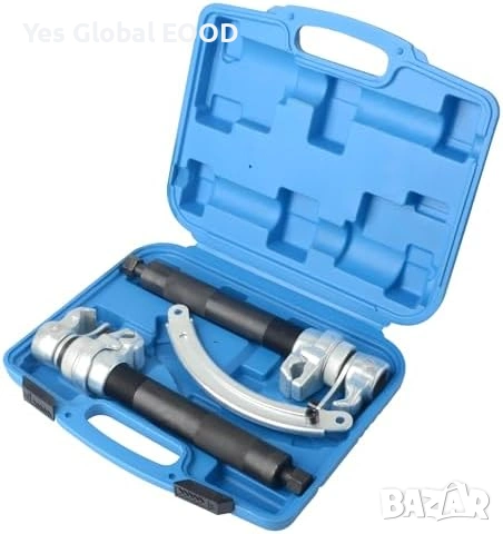 Инструментът позволява стабилно и контролирано компресиране на пружини при ремонт или смяна на амортисьори. Изработен е от здрав метал за висока издръжливост и безопасна работа.