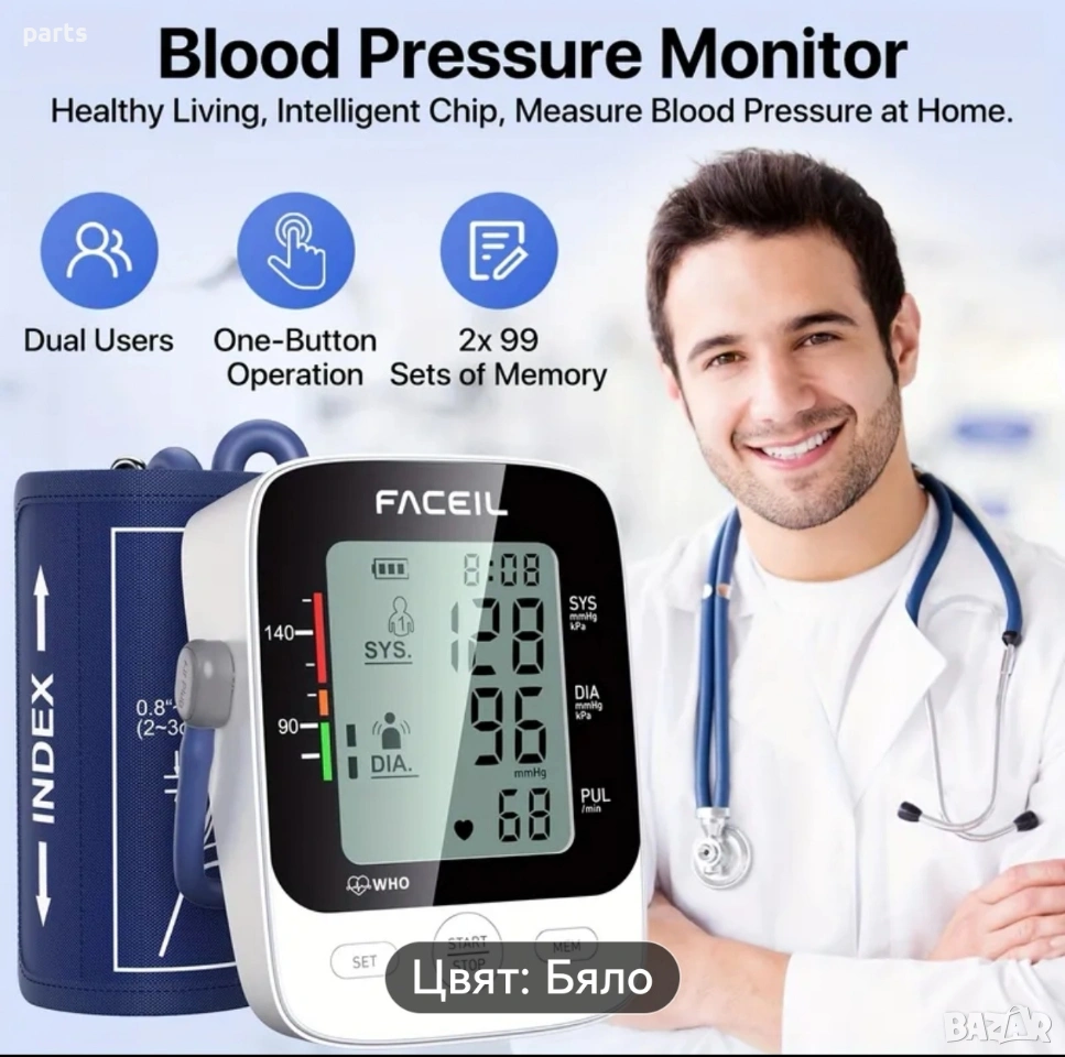 Апарат за кръвно налягане автоматичен, снимка 1 - Медицинска апаратура - 53824642 Апарат за кръвно налягане автоматичен, снимка 2 - Медицинска апаратура - 53824642 1/2
