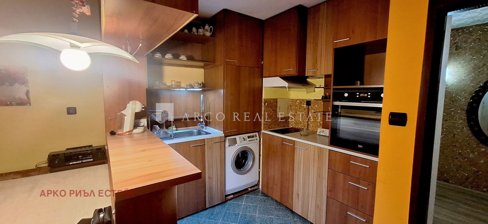 ?Оборудвана кухня с всички необходими електроуреди (печка, хладилник, пералня, миялна) с излаз на тераса.
