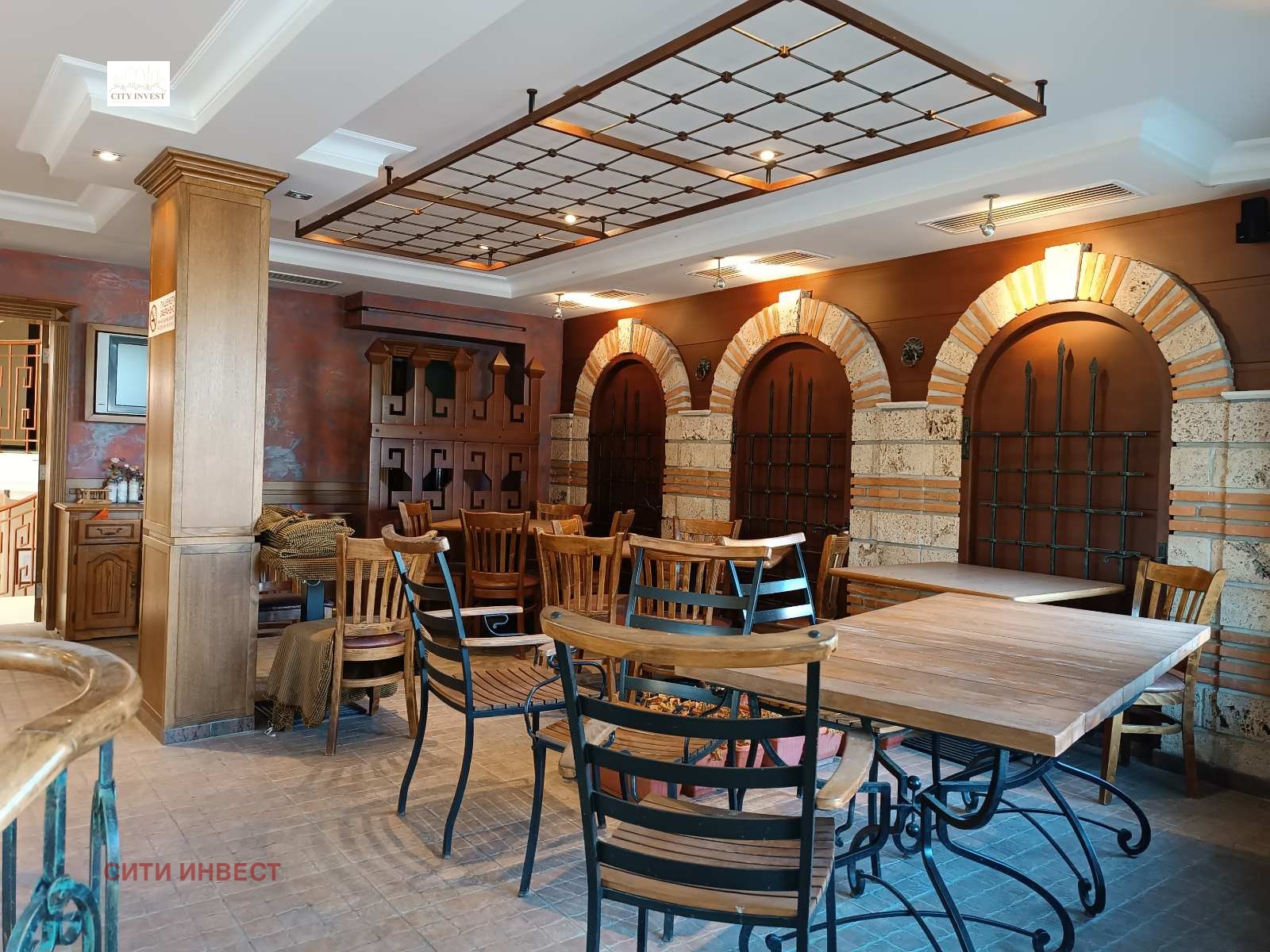 партер: ресторант състоящ се от вътрешна зала, бар, санитарни възли, външни места през летният период (общински наем). 50 вътрешни седящи места и 50 външни!