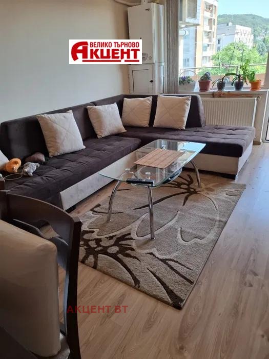 Агенция Акцент ВТ,Ви представя 2-стаен апартамент под наем, намиращ се в центъра на гр. Велико Търново. Жилището е в монолитна сграда с асансьор на 5-ти етаж от общо 8 с площ 68 кв. м. разпределени между коридор, всекидневна с кухня, спалня, баня и тоалетна в един обем и тераса. Апартаментът се отдава напълно обзаведен и оборудван с всичко необходимо за бита. Отоплението и охлаждането е с климатик.За огледи се свържете с нас.