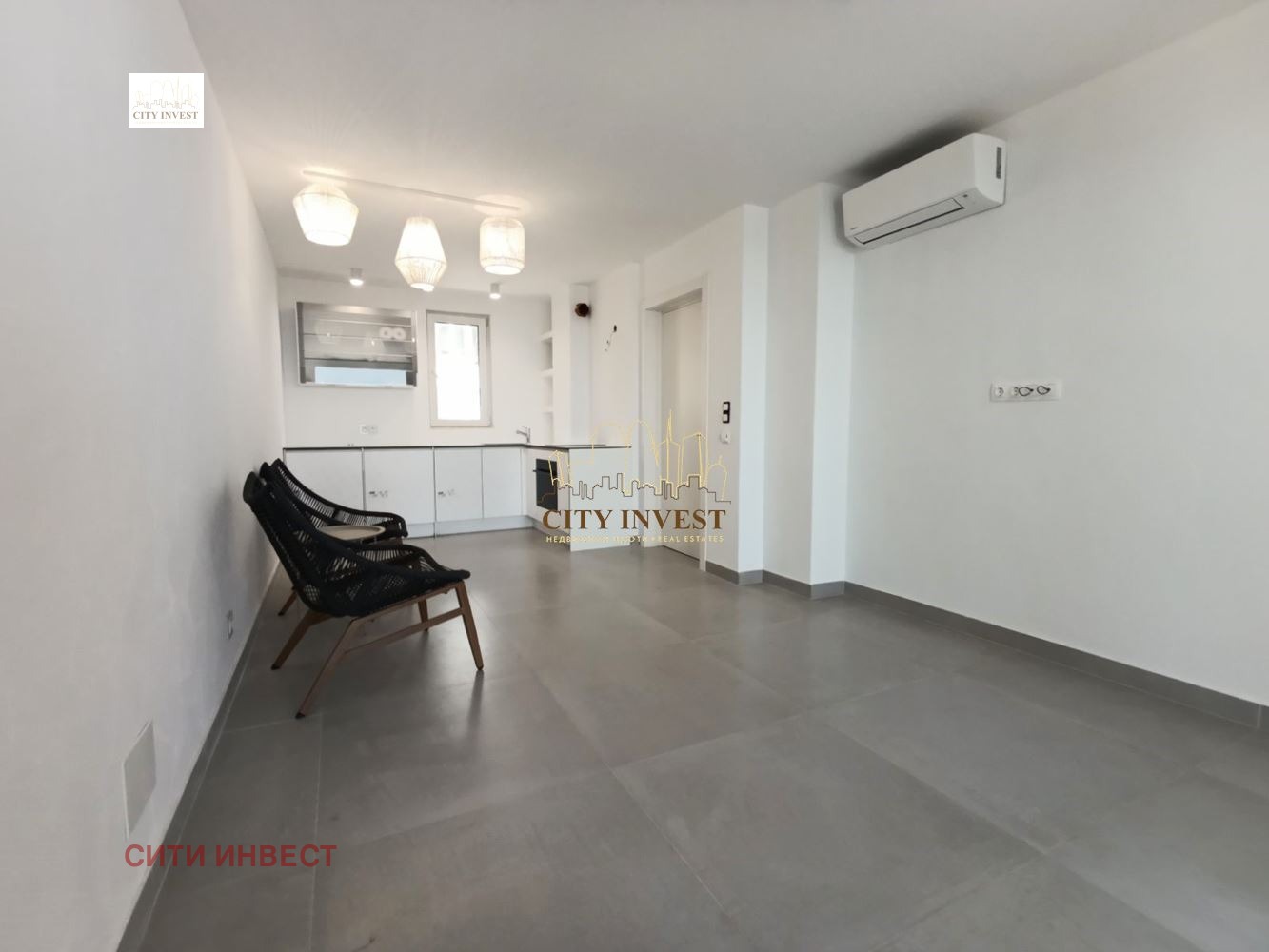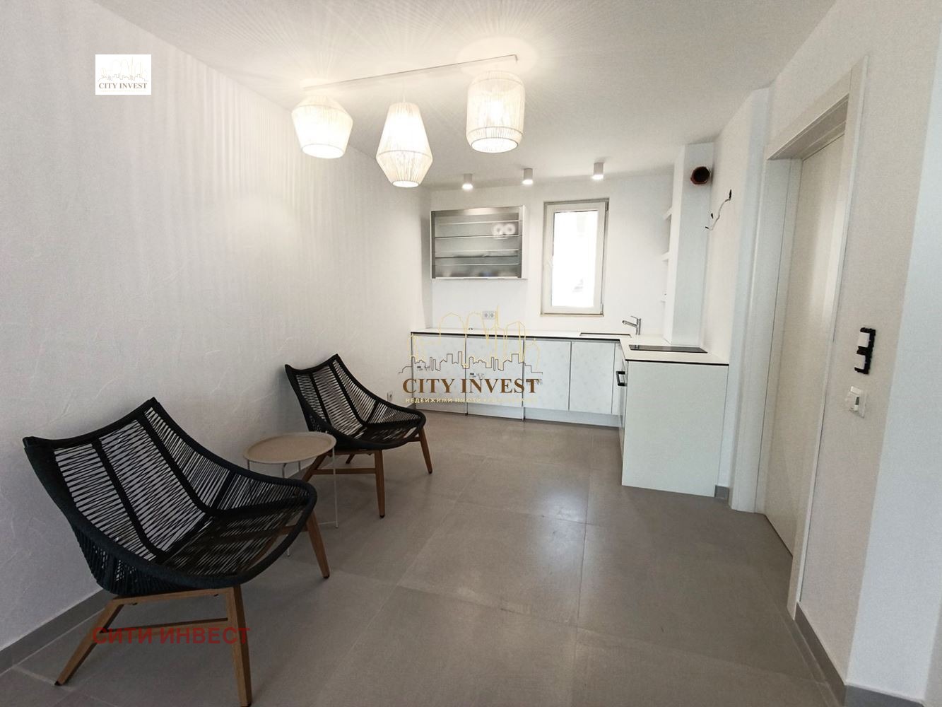 Семпла и стилна мазилка по стените и висококачествени осветителни тела, които допринасят за уют и елегантност в интериора;