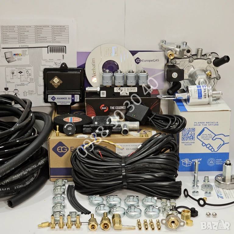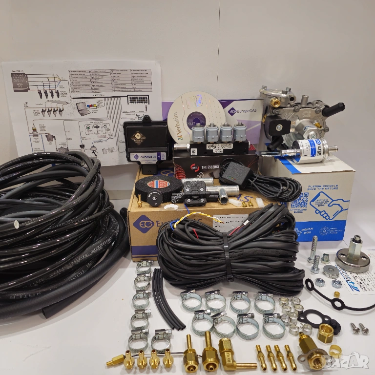 Нов! Пълен комплект газов инжекцион за 4цил. автомобили. до 170кс. ГОТОВ ЗА МОНТАЖ (всички части са оригинални, нови и с гаранция от 2г.)