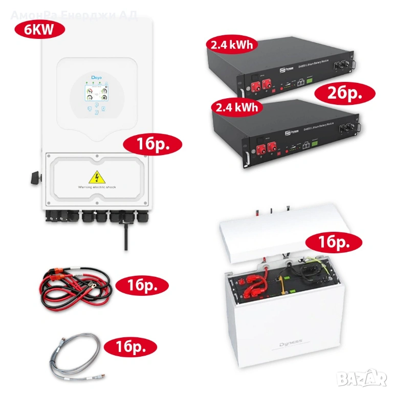 Комплект монофазен хибриден инвертор DEYE с батерии Dyness 2бр. х 2,4kWh
