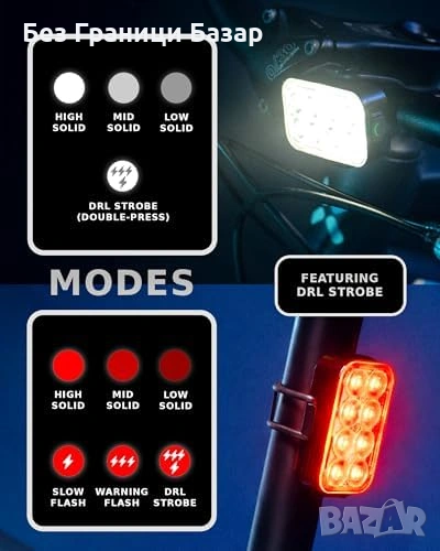 Задна светлина с до 65+ часа работа в DRL режим за дълга употреба