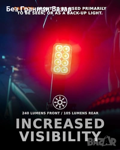 Яркост до 250 lm отпред и 105 lm отзад за по-добра видимост денем и нощем