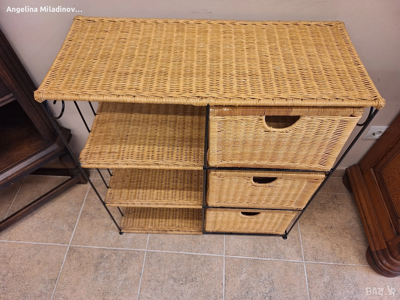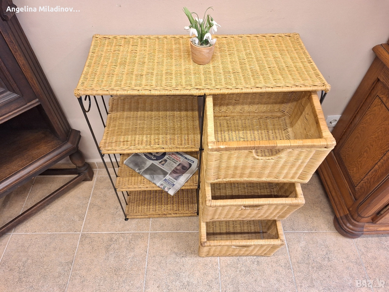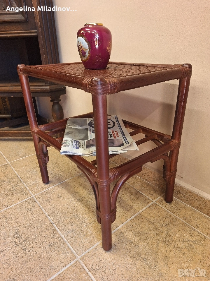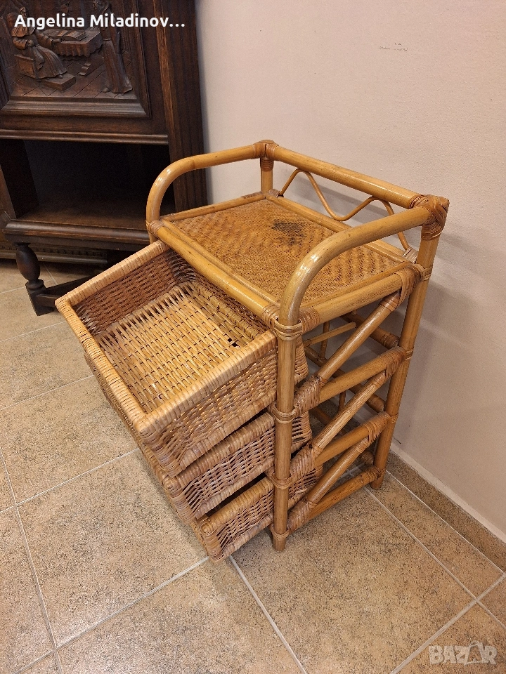 Етажерки и масичка от ратан. 1 - толяма етажерка от изкуствен ратан - 76/33/85 см. Цена - 70 €, 136,91 лв. 2 - етажерка с чекмеджета от естествен ратан - 46/31/68 см. Цена - 60 €, 117,35 лв. 3 - масичка от естествен ратан - 46/33/50 см. Цена - 20 €, 39,12 лв. Разгледайте и другите ми обяви. Последвайте ни и във фейсбук Мебели шик. vintagemebel.olx.bg