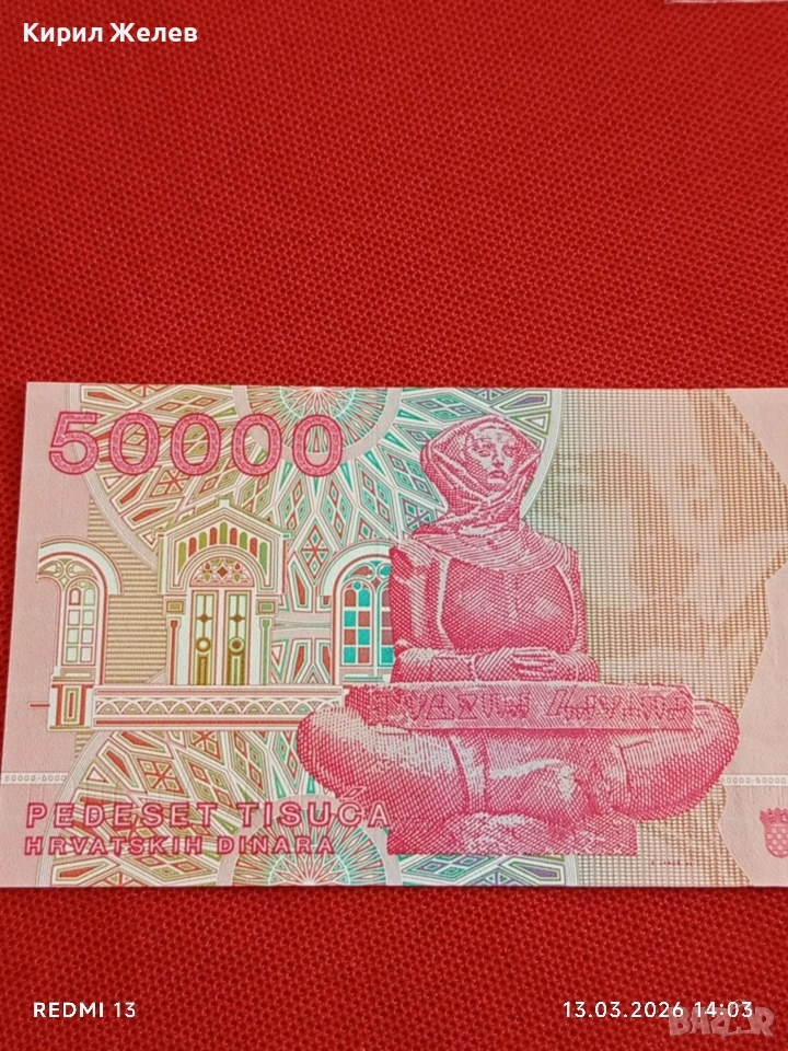 Банкнота ХЪРВАТИЯ много красива перфектно състояние непрегъвана за КОЛЕКЦИЯ ДЕКОРАЦИЯ 54053 → Обява 53825716