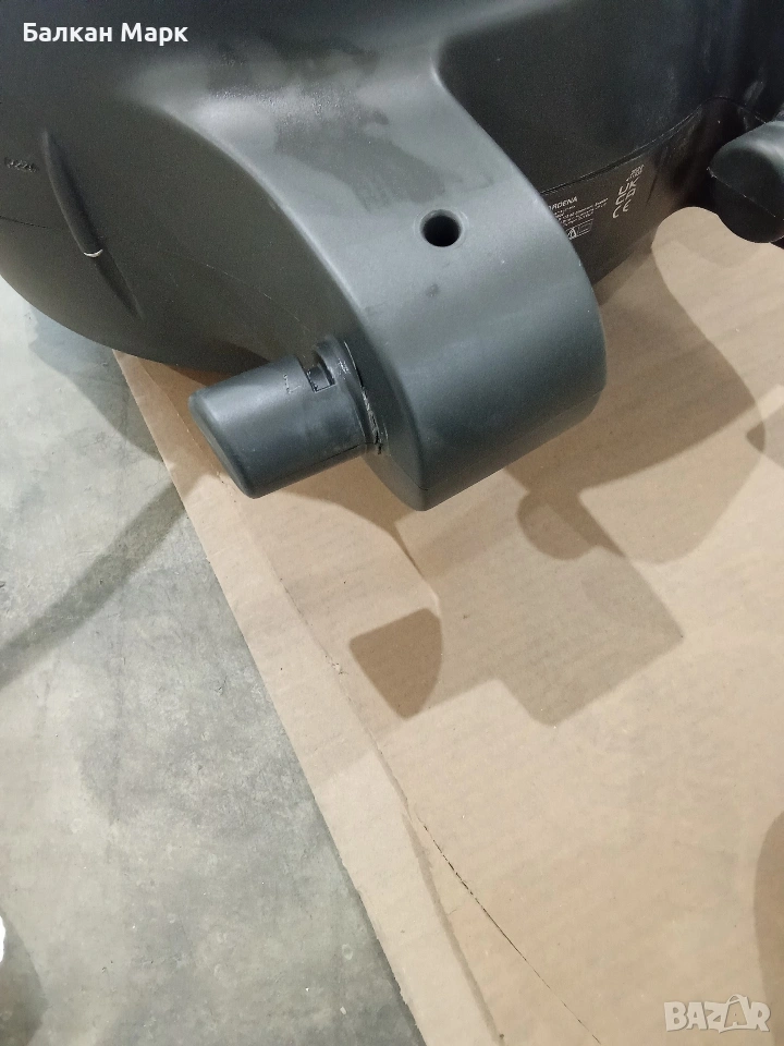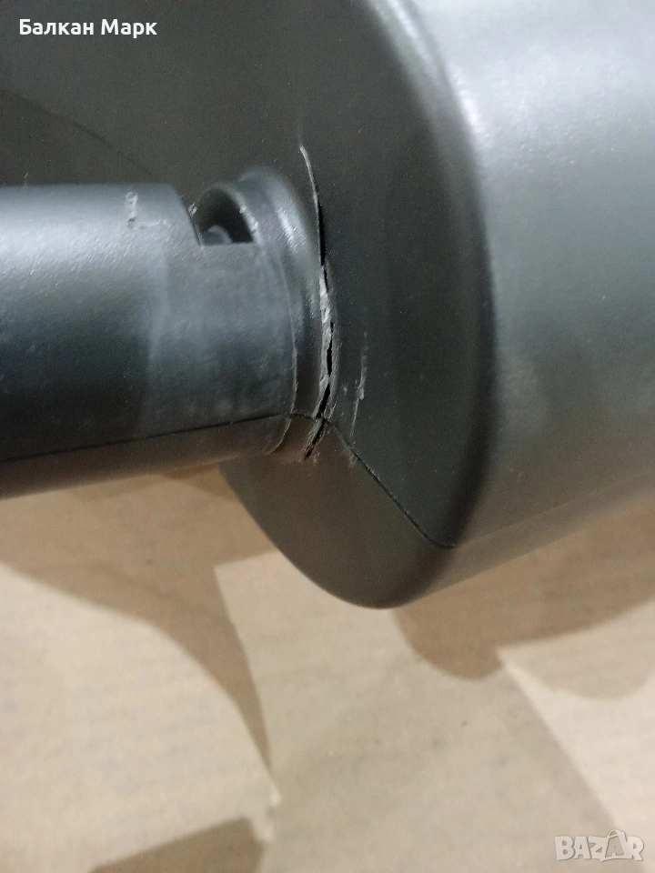 Дефект: Счупена е част от единия пластмасов щифт на основата (виж снимка 2). Подходяща за ремонт от сръчни ръце, за резервни части или за използване на маркуча и вътрешния механизъм.