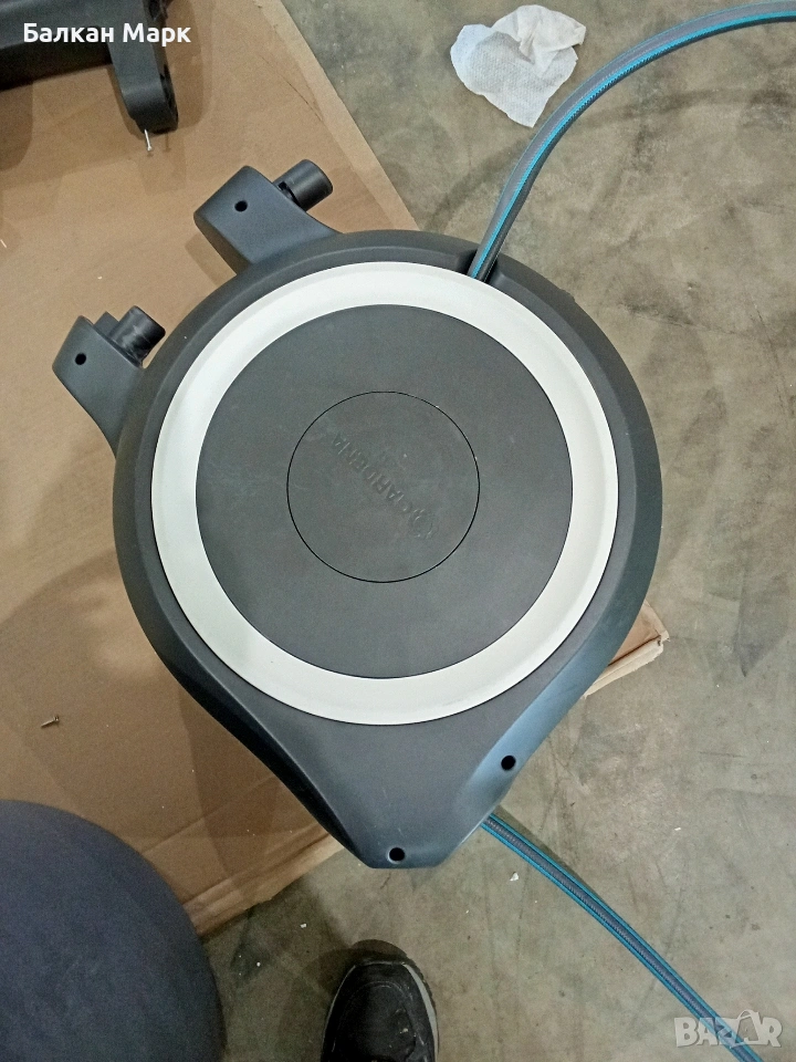 ОПИСАНИЕ: Продавам висок клас автоматична макара за маркуч GARDENA 35m Wand-Schlauchbox (Art. No: 18632). Продуктът е част от разнообразна палетирана стока, внос от Германия. Вероятно е върнат от клиент именно заради транспортна дефект или неправилен монтаж, довел до счупването на единия щифт.
