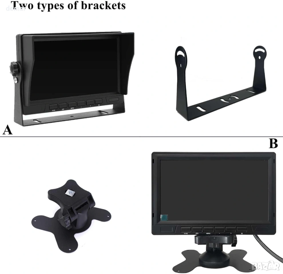 AHD 1080P камери за заден ход, 7-инчов монитор с 2 разделени екрана, 12V-24V
