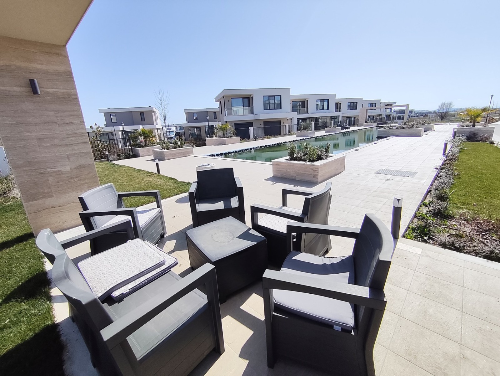 Модерно обзаведена, самостоятелна къща под наем, която се намира в затворен комплекс с басейн, нахождащ се между Поморие и Сарафово.
