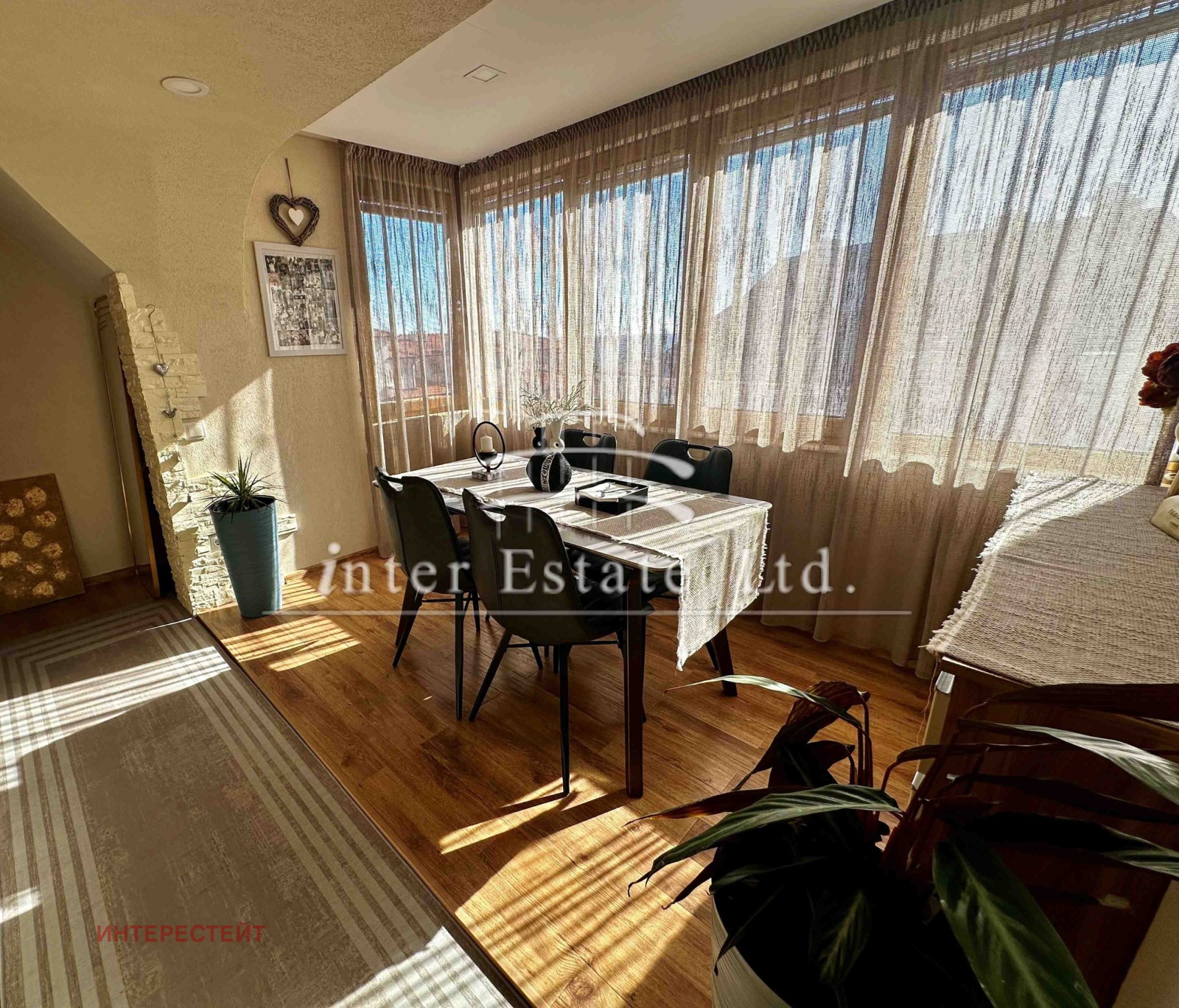 Жилището се предлага напълно обзаведено и оборудвано, готово за нанасяне. Интериорът е поддържан с внимание към детайла - поставен е нов висококачествен ламинат, а дограмата е от висок клас, осигуряваща отлична изолация и комфорт през всички сезони.