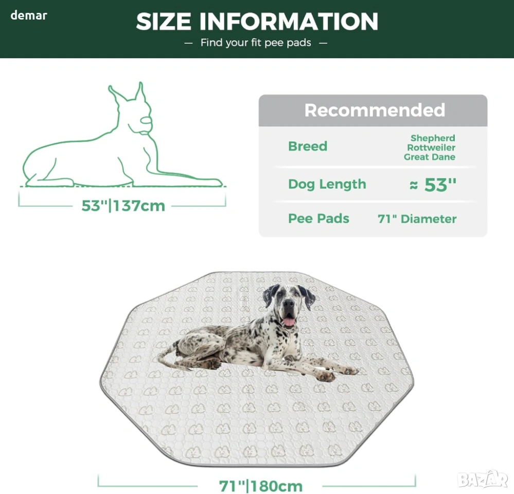 Супер абсорбираща подложка за многократна употреба за кучета, проектирана да побира до 0,4 л течност с дебел памучен слой, който поддържа кошарите, клетките и подовете чисти и сухи. Водоустойчивата TPU бариера предотвратява течове и предпазва повърхностите от инциденти, а издръжливата полиестерна конструкция предлага меко и удобно място за почивка на домашните любимци. Противоплъзгащата се подложка помага да се задържи сигурно на мястото си дори при активни кученца. Може да се пере в пералня и да се използва многократно за над 100 употреби, осигурявайки екологична и икономична алтернатива на подложките за еднократна употреба. Проектирана да пасва на кошари за кучета FXW с различни форми, включително квадратни, правоъгълни, шестоъгълни и осмоъгълни, а също така е подходяща за клетки, зони за обучение и общи пространства за домашни любимци.