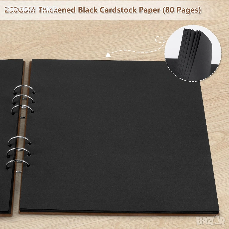 Дървен фото албум scrapbook 28x28 см 80 страници черен