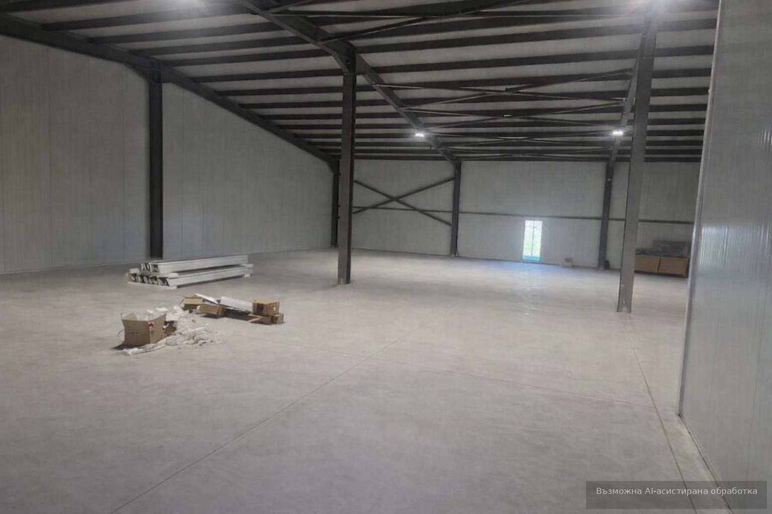 Сградата е изпълнена с 10 см сандвич панели, което осигурява добра изолация и здрава конструкция. Подът е шлайфан бетон, подходящ за складова и логистична дейност.