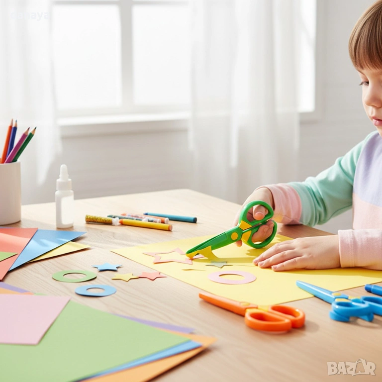 Цветният дизайн прави ножицата привлекателна за децата и я превръща в удобен помощник при рисуване, апликации и различни занимания, които развиват сръчността и фината моторика.
