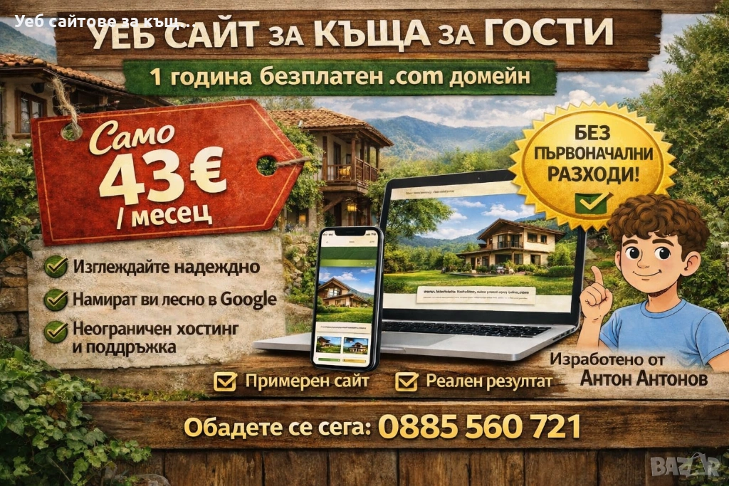 Изработвам уеб сайтове специално за къщи за гости, които представят мястото ясно и професионално в интернет, така че бъдещите гости по-лесно да Ви намерят и да се свържат директно с Вас 🌿🏡