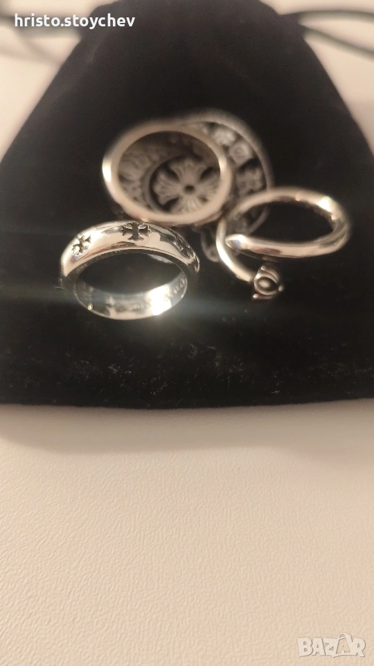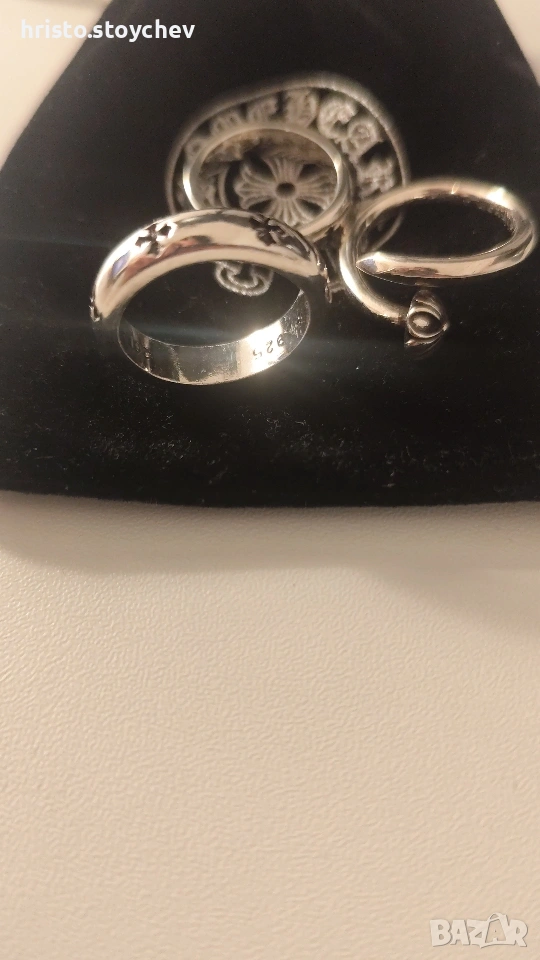 Продавам пръстен от марката Chrome Hearts. Страхотен аксесоар за стилния външен вид. Едниният е посребрен със истинско сребро