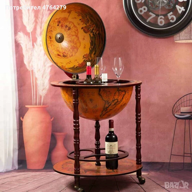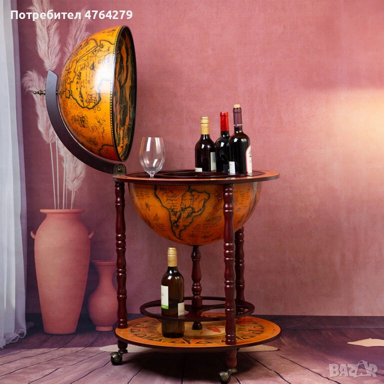 Подвижен глобус бар с място за бутилки в долната си част и място за бутилки и чаши от горната.