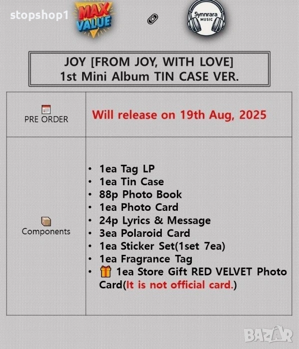 Title : JOY [FROM JOY, WITH LOVE] 1st Mini Album TIN CASE VER. / K-POP / SEALED
