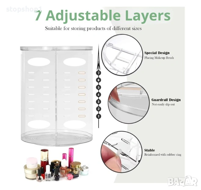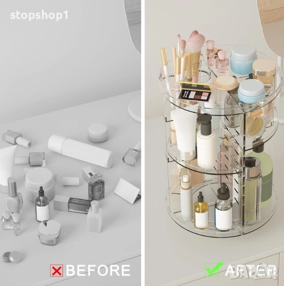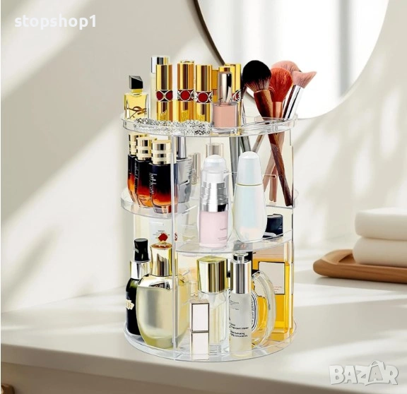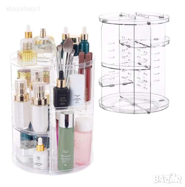 Инвестирайте в ред и елегантност с въртящия се органайзер за козметика. Превърнете процеса си на гримиране в по-приятно и по-ефективно преживяване. Този органайзер не само пази козметиката ви в безопасност, но и добавя нотка изтънченост към ежедневната ви рутина за красота.