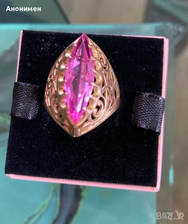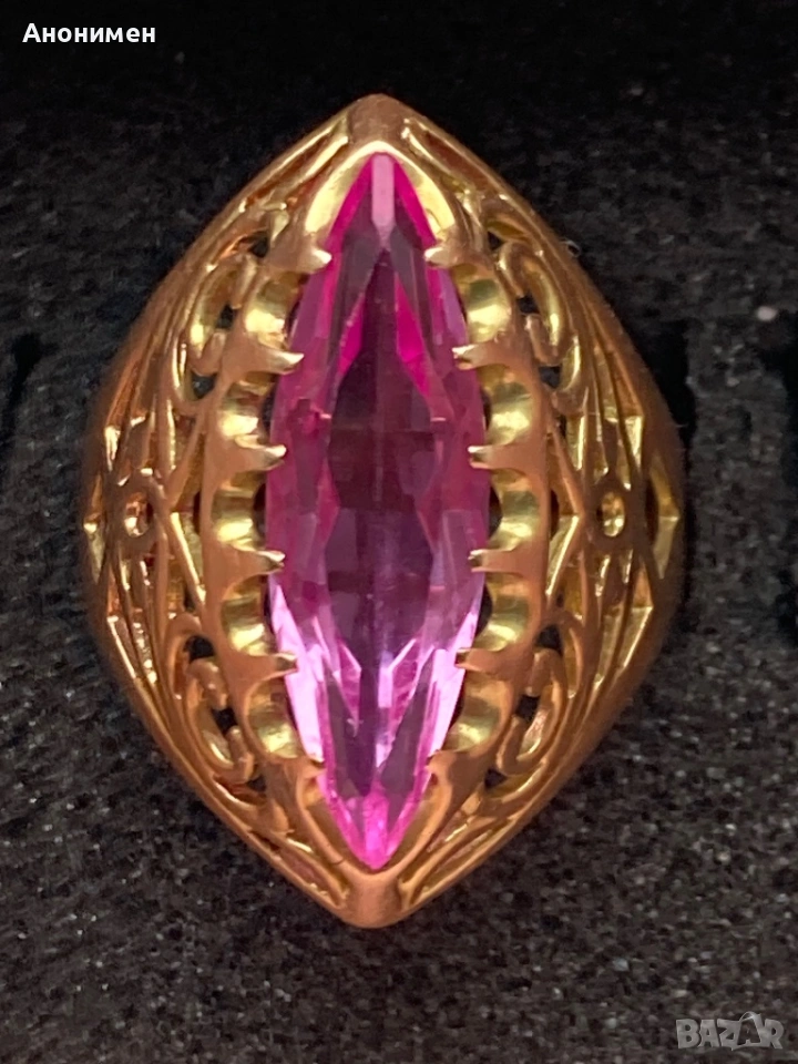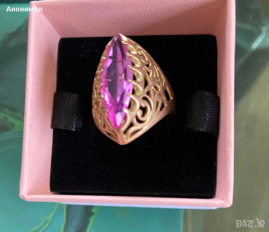 Дамски златен руски пръстен с уникален камък,носен без забележки