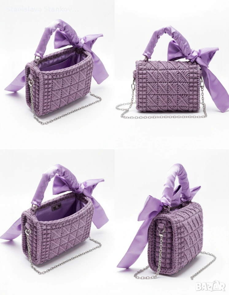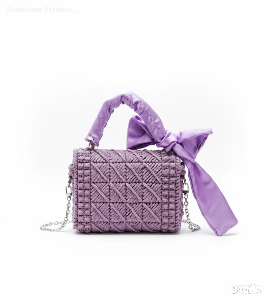 Ръчно плетена чанта „Lila Dream“ със сатенена панделка