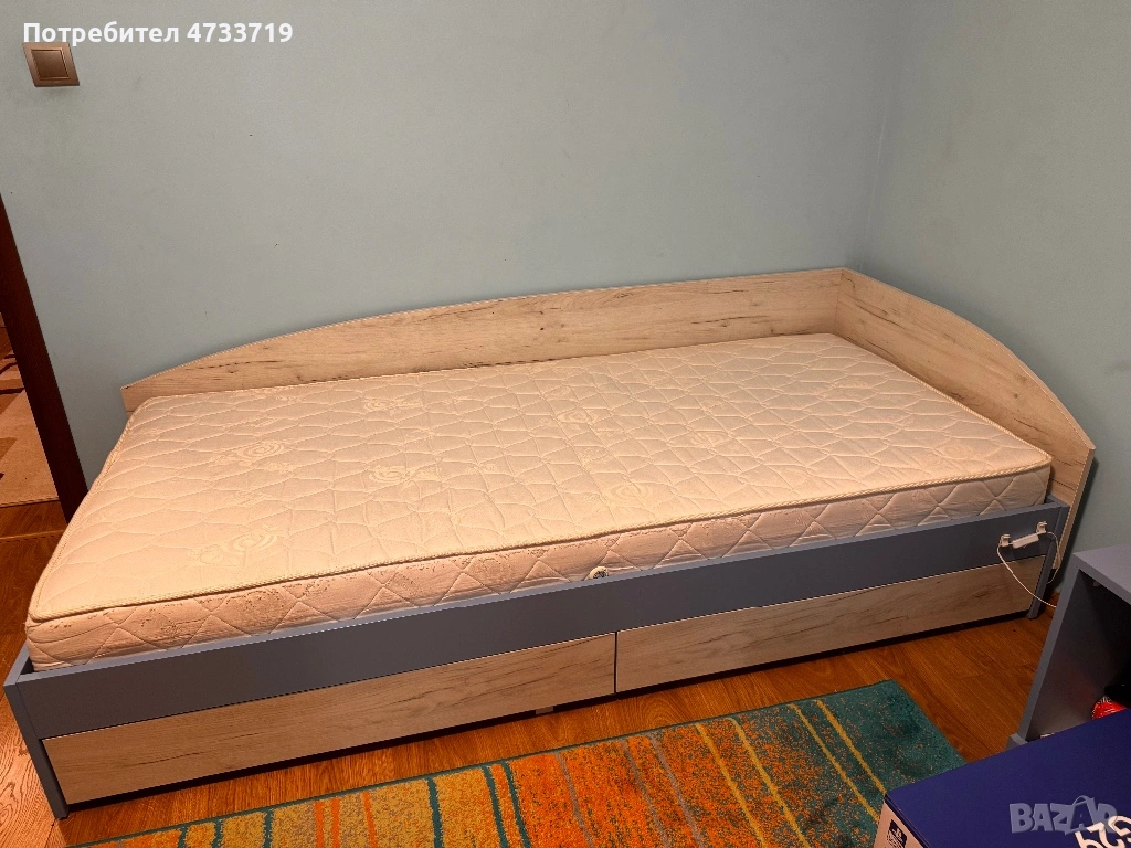 Еднолицеви матрак Нани 90/ 200см. Предлага се допълнително и легло с две чекмеджета отдолу, гардероб двукрил и етажерка от серия на мебелна къща Ирим.