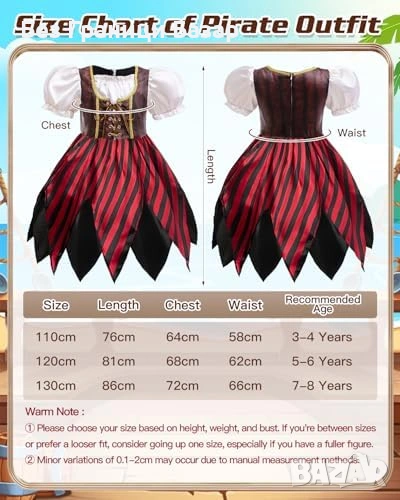 Нов Детски пиратски костюм 21 части с шапка карта и аксесоари за карнавал Хелоуин
