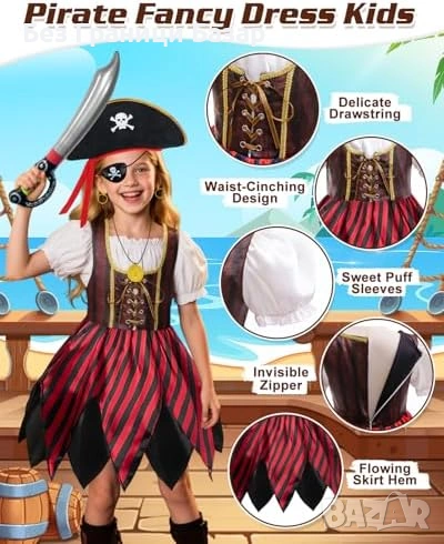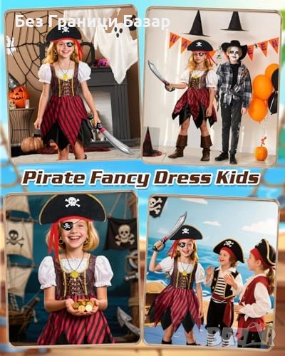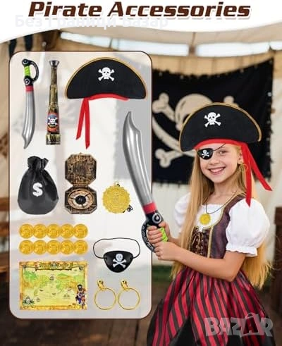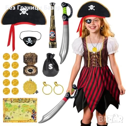 Пълен пиратски комплект за деца с костюм и богати аксесоари