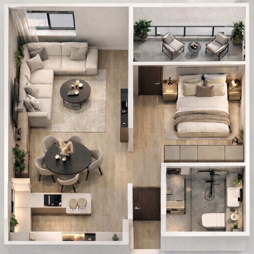 📋 С какво разполага? - Функционално разпределение от дневна с кухненски бокс, спалня, баня с тоалетна, балкон и възможност за подземно или надземно паркомясто.