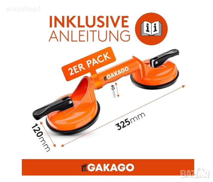 Комплект от 2 вендузи за плочки Gakago, пластмаса/алуминий/гума, оранжево/черно, 32,5 x 12 см – сигурно захващане, лесно боравене и професионална ефективност