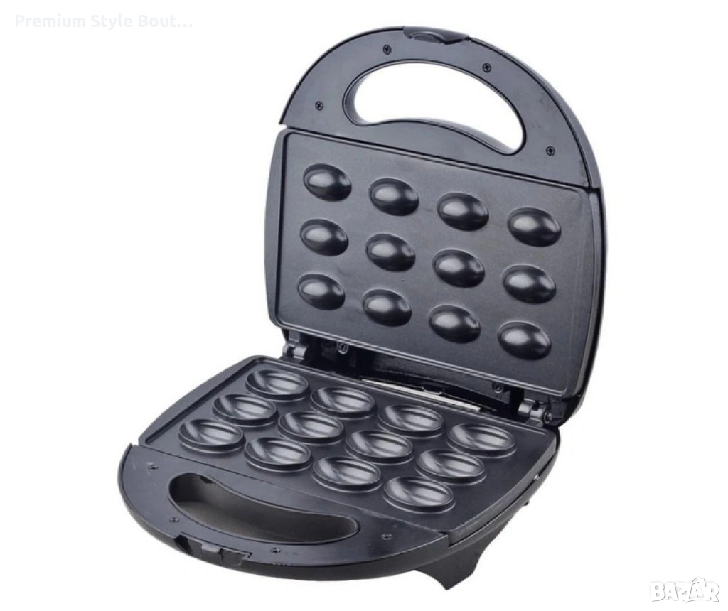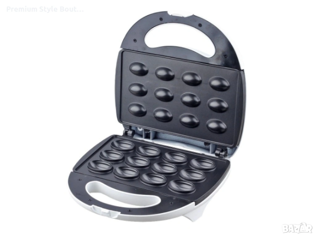 Уред за сладки орехчета Незалепваща скоба и повърхност за готвене, лесно почистване. Външните повърхности са студени при допир, което осигурява допълнителна безопасност. Устойчиви на плъзгане крака, светлинна индикация при включване и при готовност. Възможност за изправено положение и компактно съхранение. С плоча с орехови формички Напрежение: 220-240V~, 50-60Hz Мощност: 700-800 W доставка с Еконт с опция преглед и тест до 3 работни дни