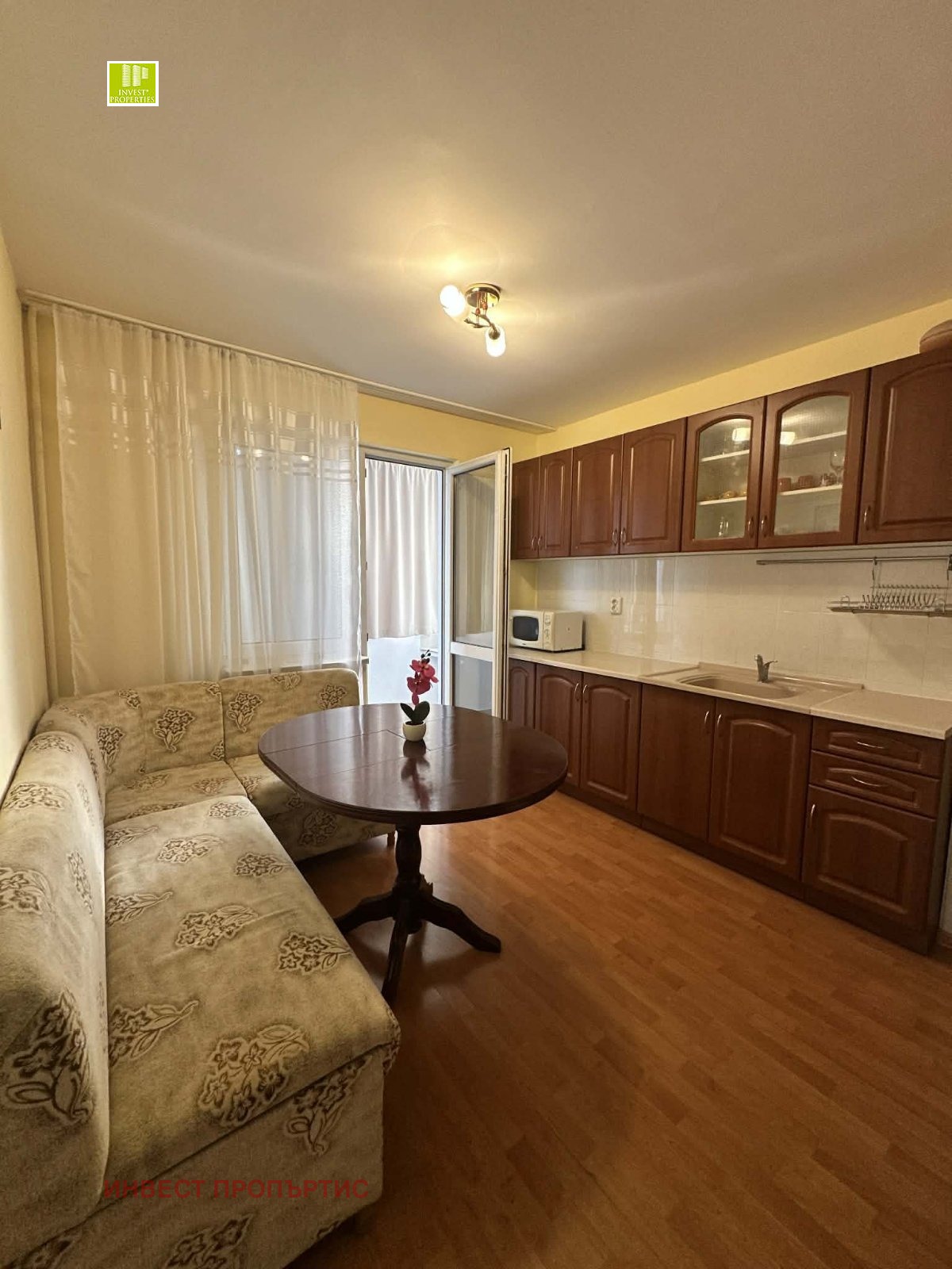 Инвест Пропъртис отдава отличен, напълно обзаведен апартамент, на ТОП ЛОКАЦИЯ, в перфектна среда за живеене! Тихо, същевременно комуникативно място, в непосредствена близост до метростанция България, множество спирки на обществен транспорт, Южен парк и пазар Иван Вазов, до разнообразни магазини, престижни учебни заведения и детски градини, елегантни ресторанти и кафенета, пространства за спорт и отдих! Сграда с поддържани общи части и асансьор! Апартаментът е изключително светъл, топъл и уютен, с изцяло южно изложение и невероятна панорамна гледка към Витоша и озеленено междублоково пространство. Жилището е след освежаване и ремонт, с обзавеждане и оборудване, видно от снимките, с качествена бяла техника и нова готварска печка, ситуирана на остъклената с PVC дограма тераса. Разпределение: Коридор, трапезарна част с кухненски бокс, с подход към дневна, просторна, самостоятелна спалня, в която има двукрилен гардероб, спалня, нощни шкафчета, скрин, диван с разтегателен механизъм. Баня и санитарен възел и отделно мокро помещение. Отопление: Централен ТЕЦ, климатик. Голям паркинг за свободно паркиране пред блока. Без домашни любимци. За контакти: Кирилова 0894419037