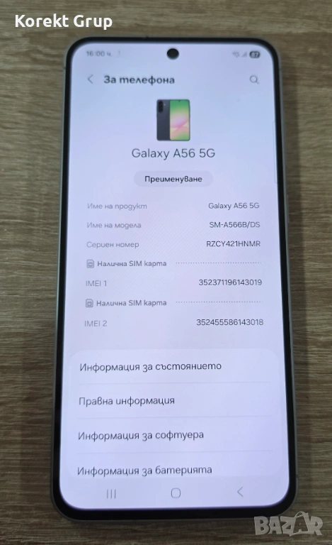 Продавам Samsung A56 5g запазен,,без следи от употреба.