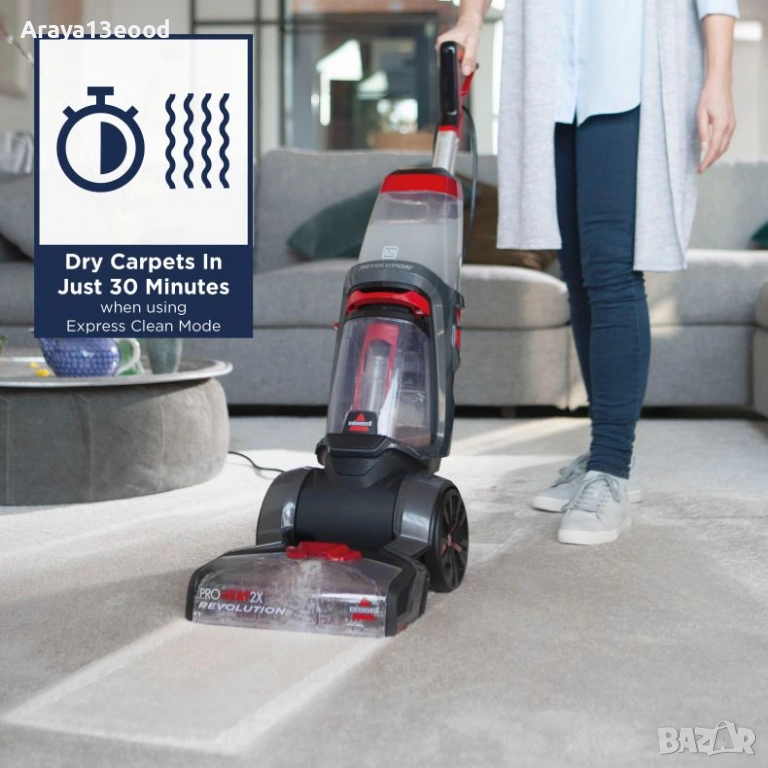 BISSELL ProHeat 2X Revolution Carpet Cleaner 1858N е отличен избор за домакинства, които искат дълбоко и ефективно почистване на килими и тапицерии, без необходимост от наемане на професионално оборудване.