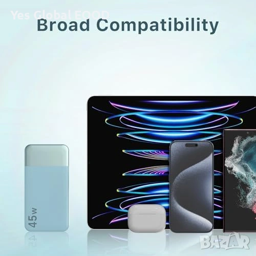 Мощна външна батерия NOBIS Power Bank 20000mAh с бързо зареждане до 45W, подходяща за смартфони, таблети, лаптопи и други мобилни устройства. Осигурява надеждно захранване по време на пътуване, работа или ежедневна употреба.